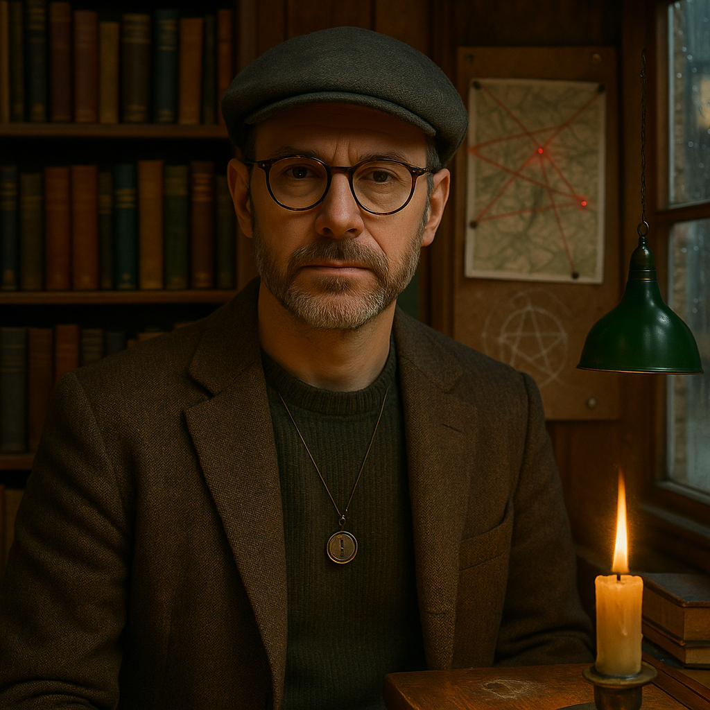 Rowan Thorne would like a quiet life: sell ballads and parish histories, brew nettle tea, and keep the shelves in proper order. His Derbyshire bookshop is both refuge and lab—ledger pencil, pendulum, clinometer card, red thread, and OS maps to hand—because Britain’s older currents run beneath the floorboards as surely as under moor and market. Rowan’s gift isn’t spellcraft; it’s pattern sense. He notices the small things that stand up in court: a wax ridge that’s been lifted and re-pressed, a chisel nick repeating every eight millimetres, a rope line shifted a half-pace inward, a metronome-clean cadence at a public rite.